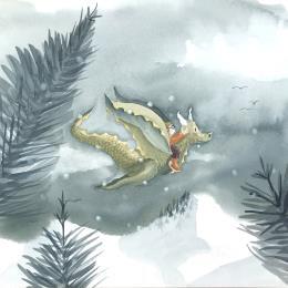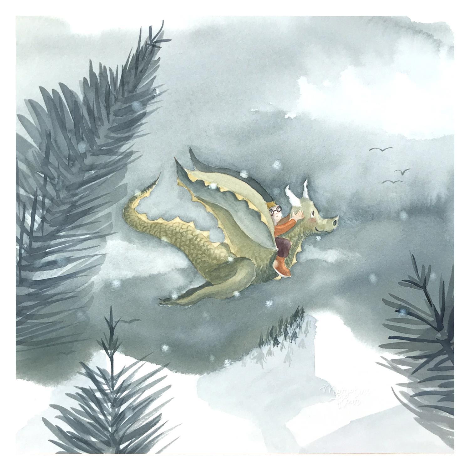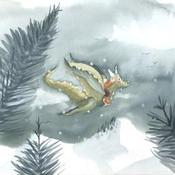Die Künstlerin verwendete die Aquarelltechnik, um dieses kleinformatige Gemälde auf Papier im Stil der naiven Kunst zu schaffen.