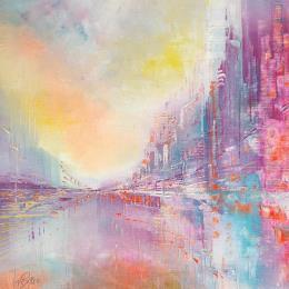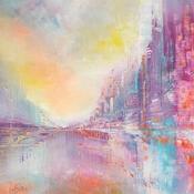 Dieses einzigartige und originale zeitgenössische Kunstwerk "Ville arc en ciel" in dem Stil "" wurde von dem zeitgenössischen Künstler Levesque Emmanuelle kreiert.
