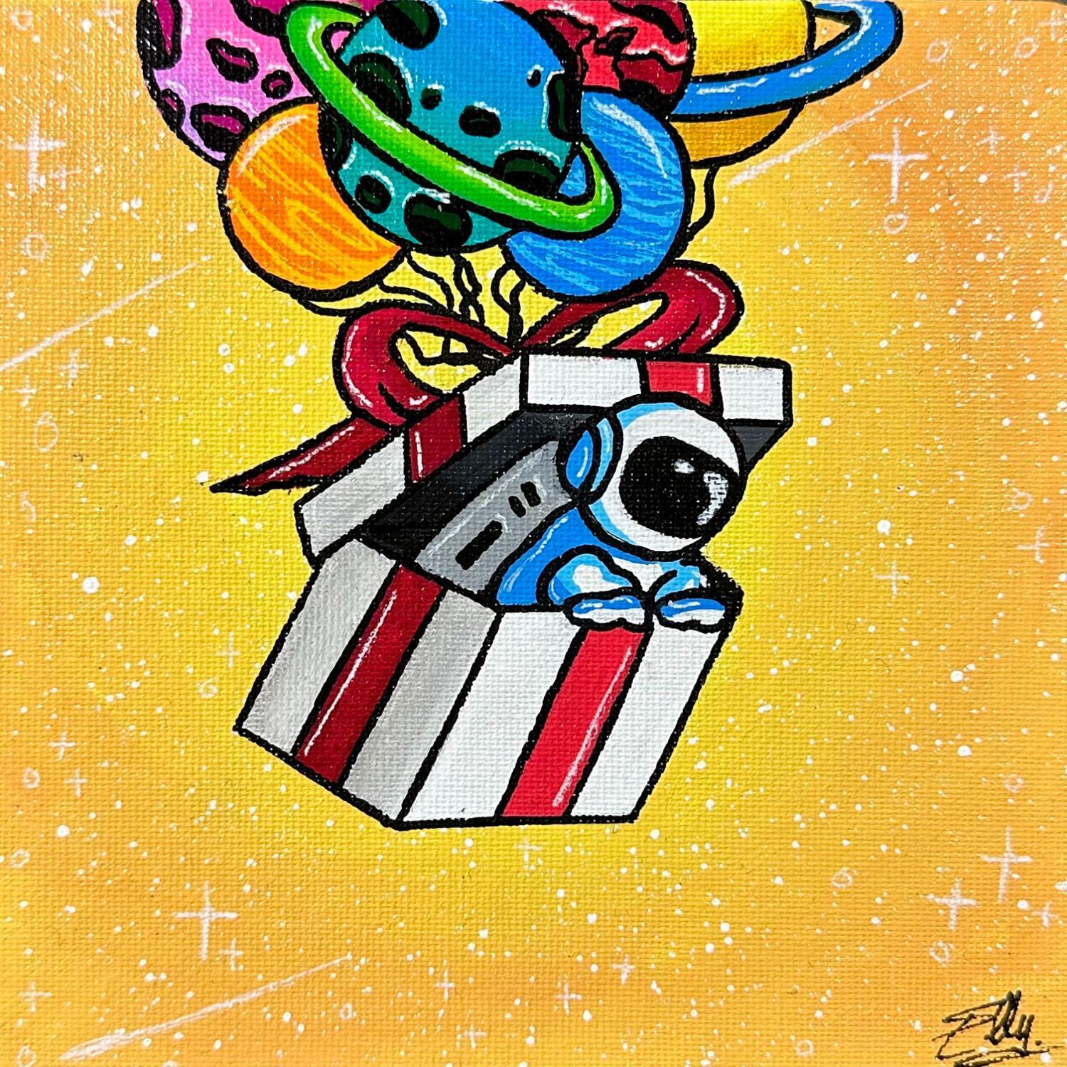 Dieses einzigartige und originelle zeitgenössische Kunstwerk "Fliegende Überraschung" wurde von der zeitgenössischen Künstlerin Elly geschaffen.