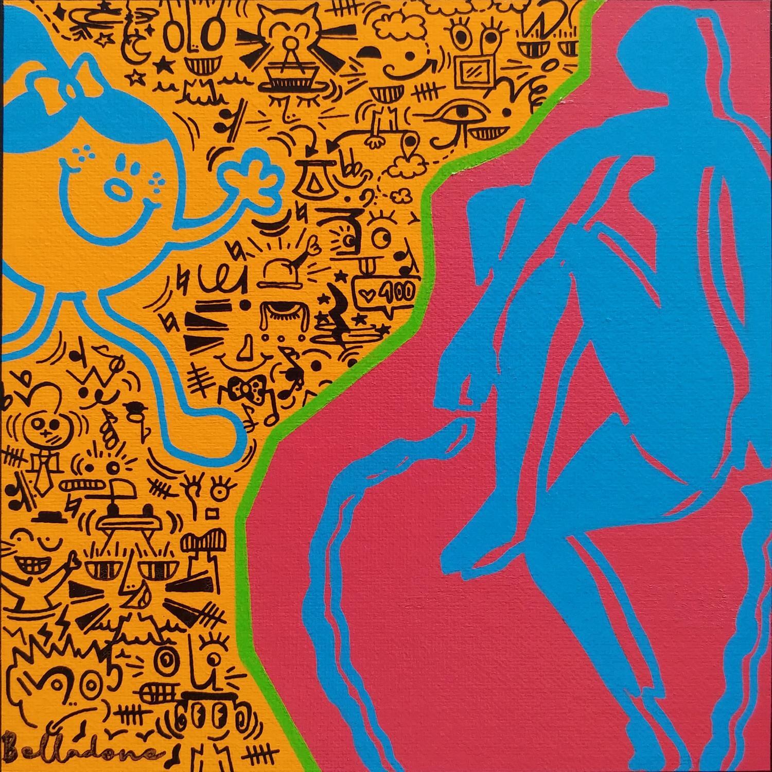 Dieses einzigartige und originelle zeitgenössische Kunstwerk "Frau Akrobatin" wurde von dem zeitgenössischen Künstler Belladone geschaffen.