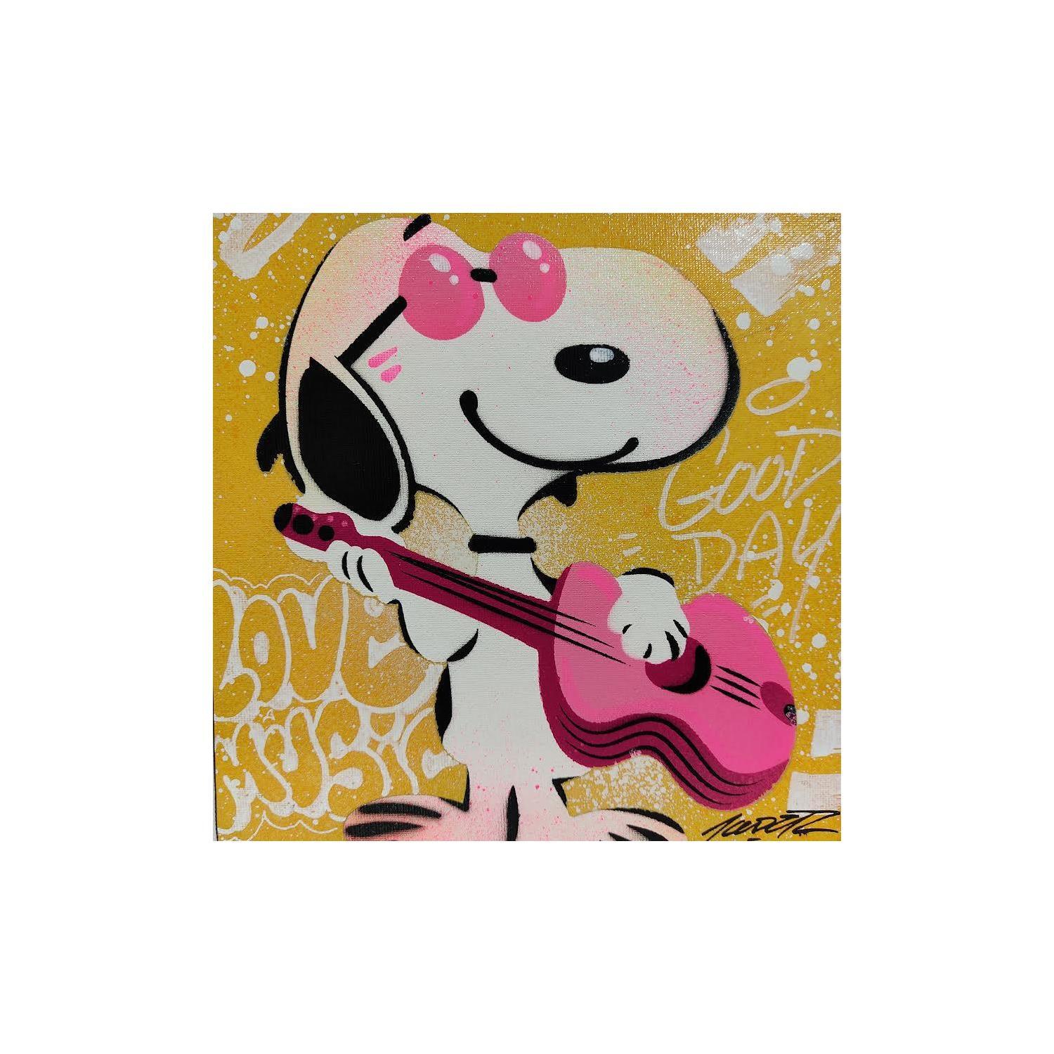 Dieses einzigartige und originale zeitgenössische Kunstwerk "Snoopy Musichien" in dem Stil "Pop-Art" wurde von dem zeitgenössischen Künstler Lemoine Mael kreiert.