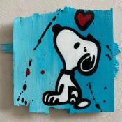 Die Künstlerin verwendete Acrylfarbe, um dieses kleinformatige Gemälde auf Holz im Pop-Art-Stil mit dem Thema Pop-Ikonen zu schaffen.