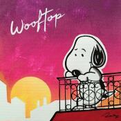 Dieses einzigartige und originelle zeitgenössische Kunstwerk "Wooftop" wurde von dem zeitgenössischen Künstler Rocky Chaplin geschaffen.