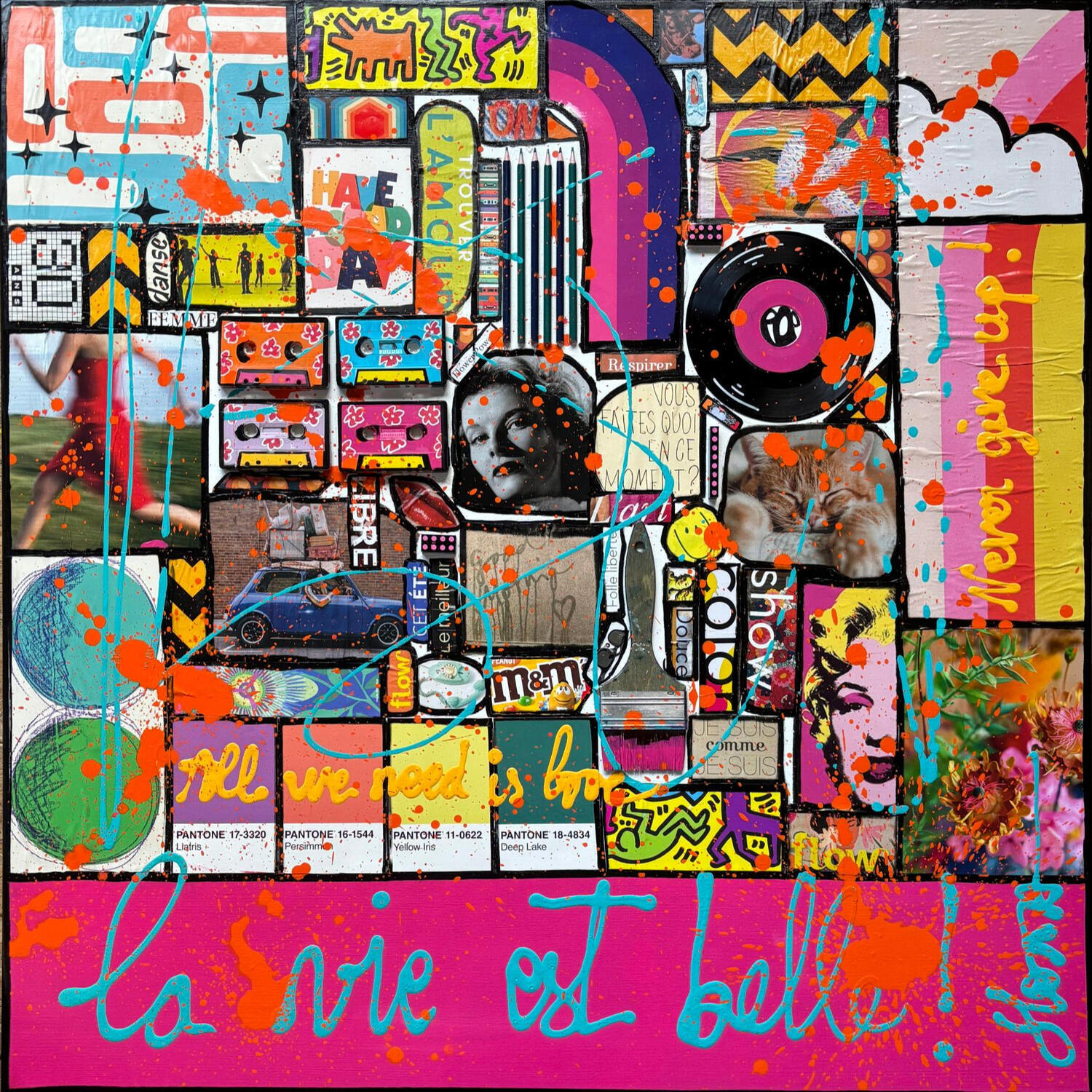 Dieses einzigartige und originale zeitgenössische Kunstwerk "La vie est belle ! (All we need is love)" in dem Stil "Pop-Art" wurde von dem zeitgenössischen Künstler Costa Sophie kreiert.