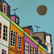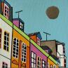 Der Künstler verwendete Acryl, Collage, Blattsilber, Papier, Posca, Upcycling auf Leinenkarton, um dieses Kleine Gemälde zum Thema "Urban" anzufertigen.