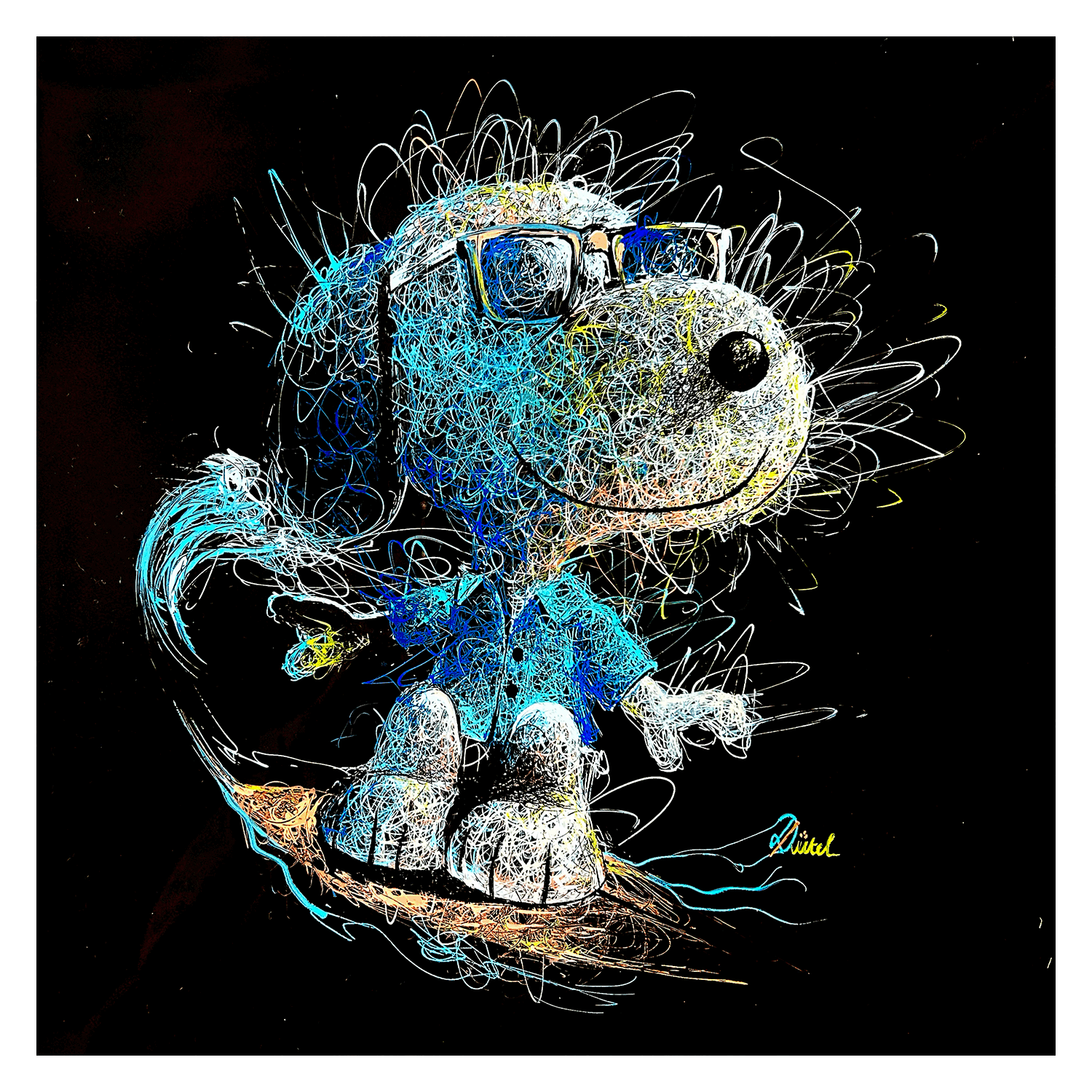 "Snoopy surf" ist ein einzigartiges zeitgenössisches Werk, das von Pauline Dutel signiert wurde.