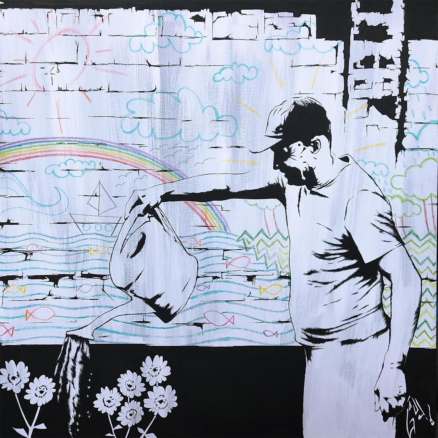 Gemälde Mr. Sunrise von Di Vicino Gaudio Alessandro | Gemälde Street art Alltagsszenen Acryl