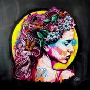 La Femme aux PapillonsGemälde La Femme aux Papillons von Sufyr | Gemälde Street art Pop-Ikonen Graffiti Acryl