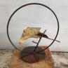 Der Künstler verwendete Metall auf Metall, um diese Kleine Skulptur zum Thema "Tiere" anzufertigen.