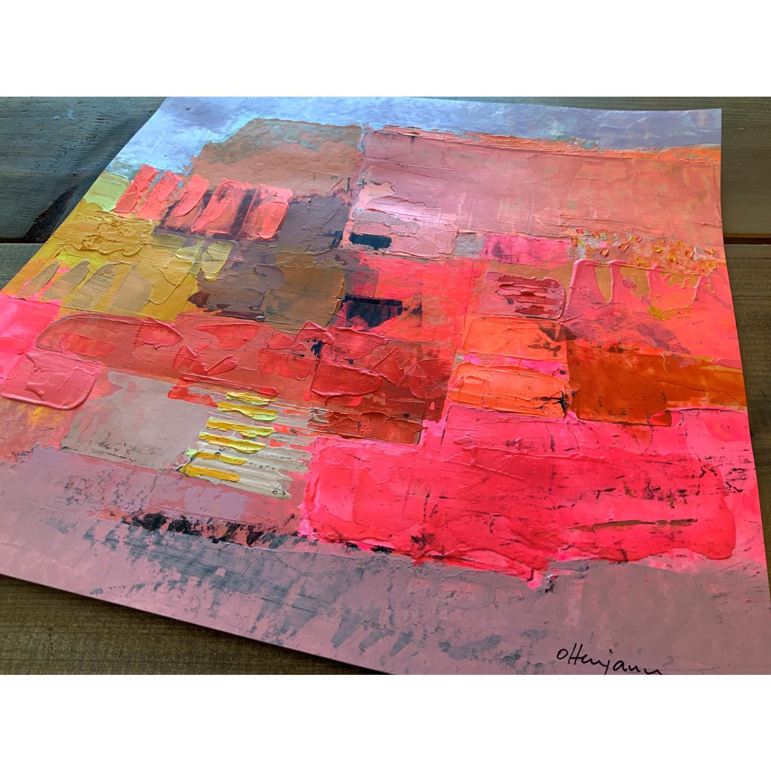 Der Künstler verwendete die Acryltechnik, um dieses kleinformatige Gemälde auf Papier im abstrakten Stil zu schaffen.