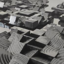 Der Künstler verwendete Acryl, Holz, Collage auf Dibon, um dieses Große Gemälde zum Thema "Minimalistisch" anzufertigen.