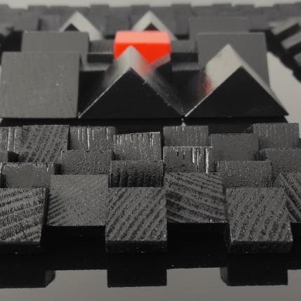 Der Künstler verwendete Acryl, Holz, Collage, Lack auf Dibon, um dieses Große Gemälde zum Thema "Minimalistisch" anzufertigen.