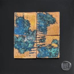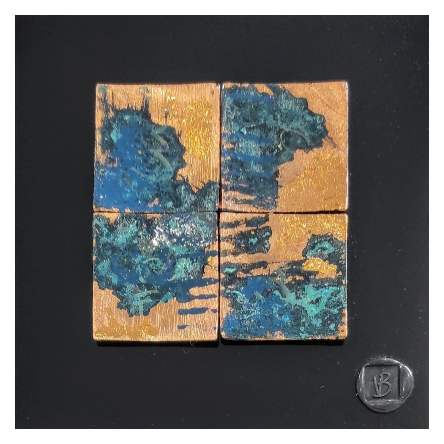 Der Künstler verwendete Holz, Metall, Acryl, Collage, Harz auf Dibon, um dieses Kleine Gemälde zum Thema "Minimalistisch" anzufertigen.