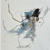Der Künstler verwendete auf Papier, um dieses Kleine Gemälde zum Thema "Schwarz & Weiß" anzufertigen.