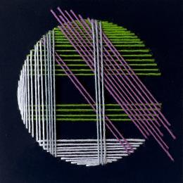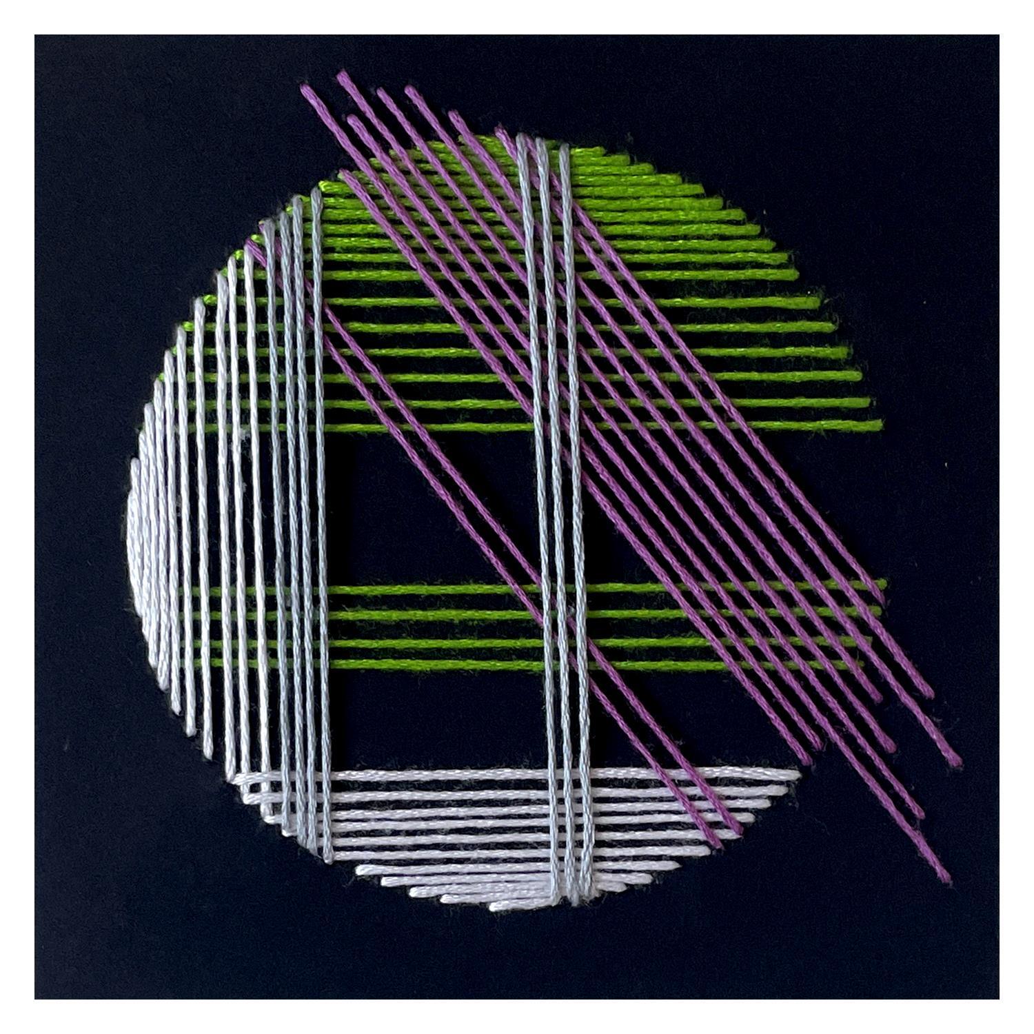 Die Künstlerin hat verschiedene Techniken (Stickerei auf schwarzem Cansonpapier) verwendet, um dieses kleinformatige Bild mit seinem einzigartigen Stil zu schaffen.