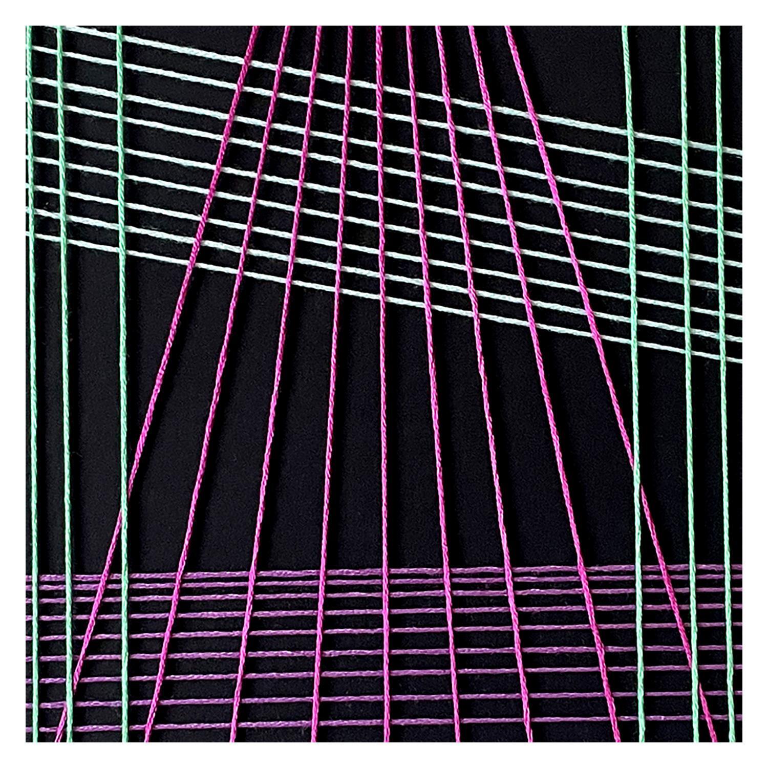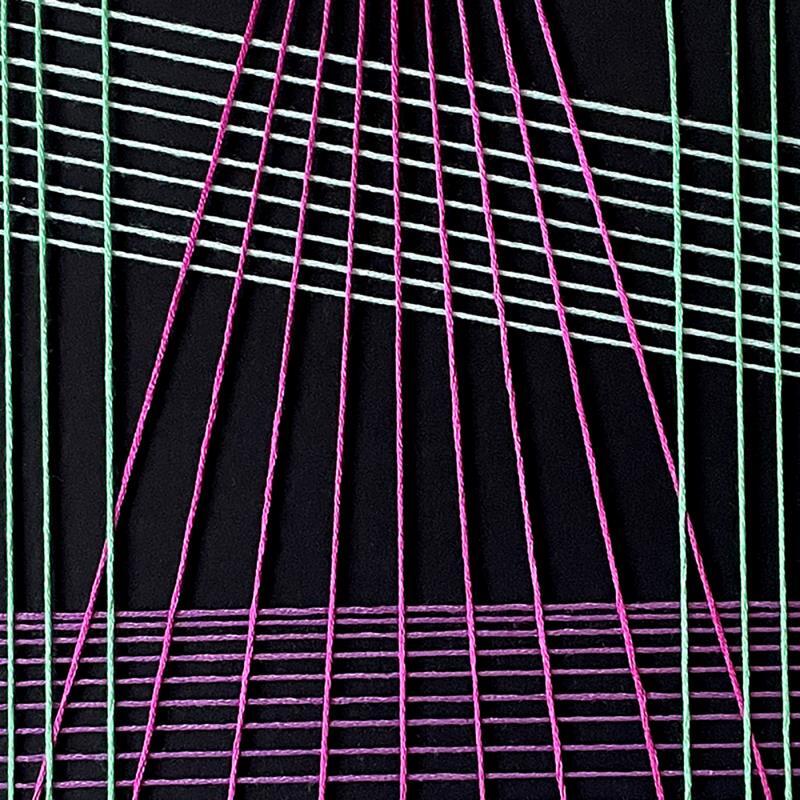 Die Künstlerin verwendete verschiedene Techniken (Stickerei auf schwarzem Cansonpapier), um dieses Gemälde im Zwischenformat mit seinem einzigartigen Stil zu schaffen.