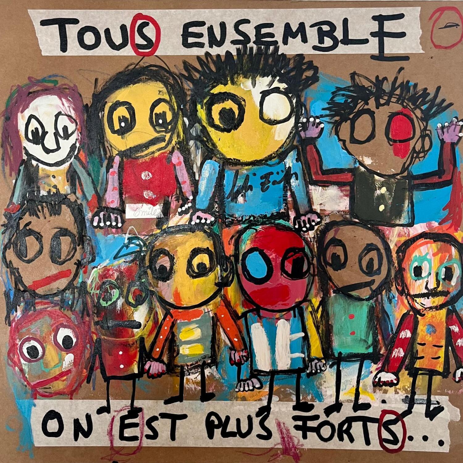 Dieses einzigartige und originale zeitgenössische Kunstwerk "TOUS ENSEMBLE ON EST PLUS FORTS" in dem Stil "Art brut" wurde von dem zeitgenössischen Künstler Zaïdi Larbi kreiert.