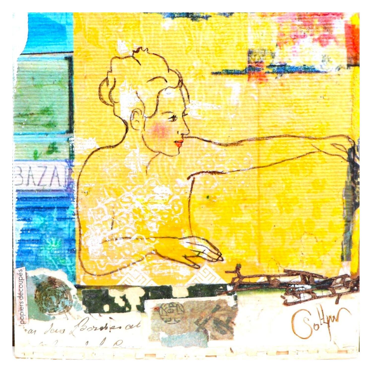 Der Künstler verwendete die Techniken Tinte, Acryl, um dieses kleinformatige Gemälde auf Holz im Stil der Art Singulier zu schaffen.