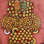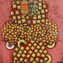 Der Künstler verwendete Acryl, Collage auf Papier, um dieses Kleine Gemälde anzufertigen.