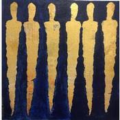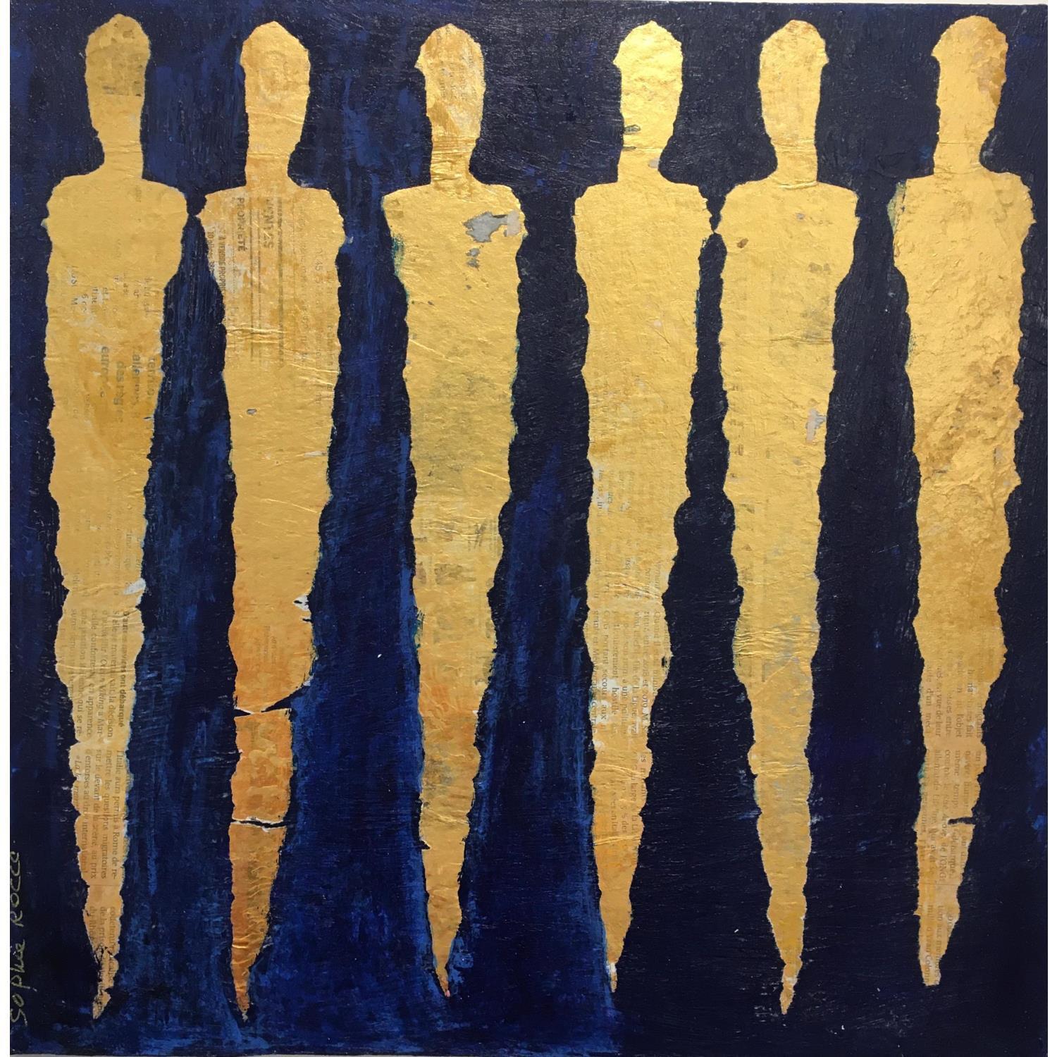 Dieses einzigartige und originale zeitgenössische Kunstwerk "Du bleu dans l'or" in dem Stil "Art brut" wurde von dem zeitgenössischen Künstler Rocco Sophie kreiert.