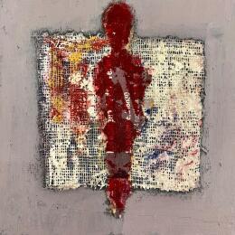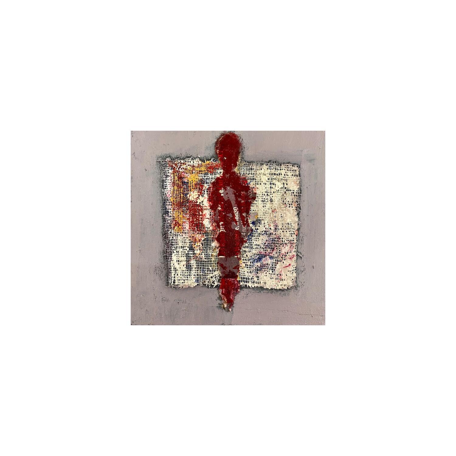 Der Künstler verwendete Acryl, Collage auf Leinenkarton, um dieses Kleine Gemälde zum Thema "Minimalistisch" anzufertigen.