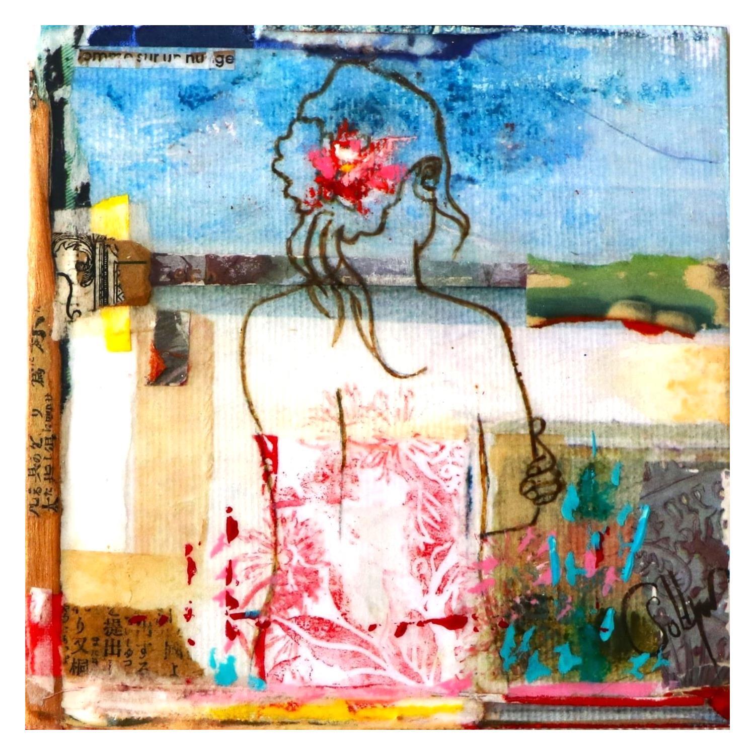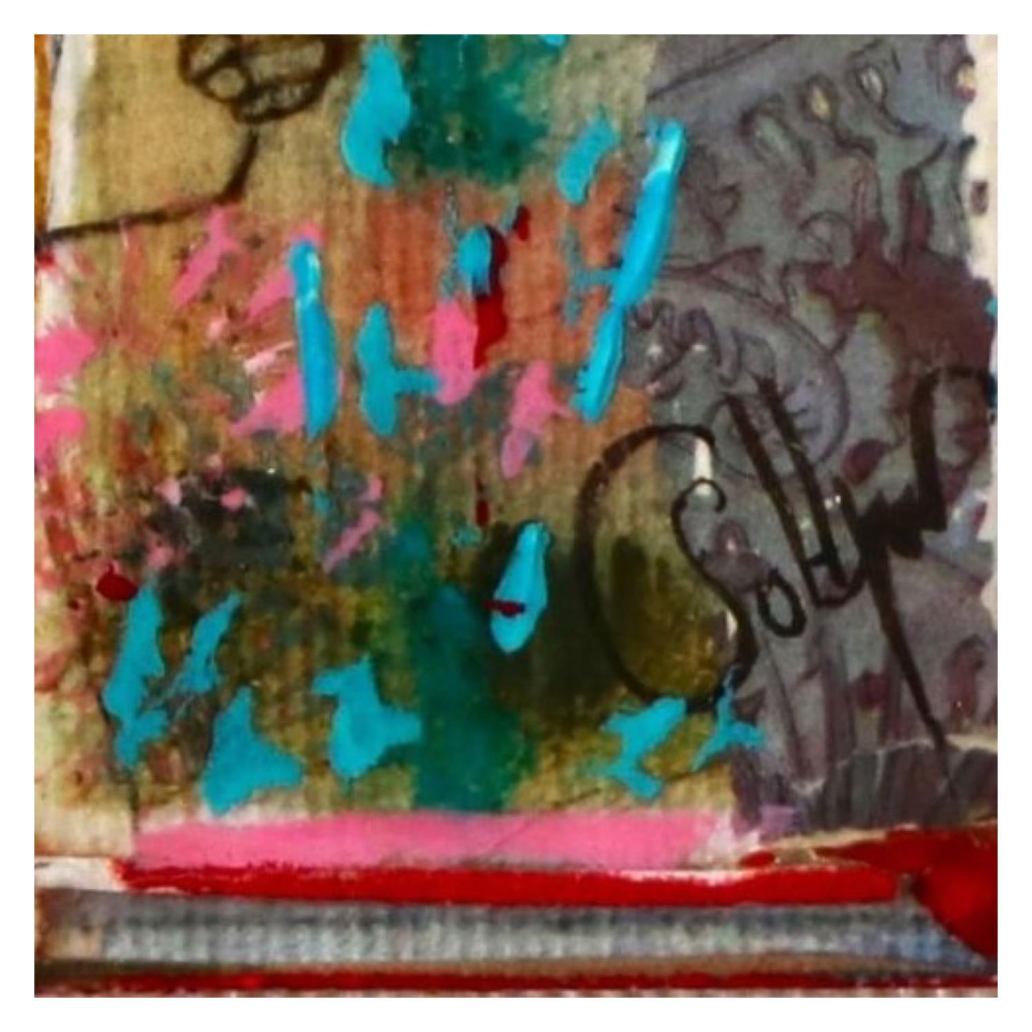 Der Künstler verwendete die Techniken Tinte, Acryl, um dieses kleinformatige Gemälde auf Holz im Stil der Art Singulier zu schaffen.