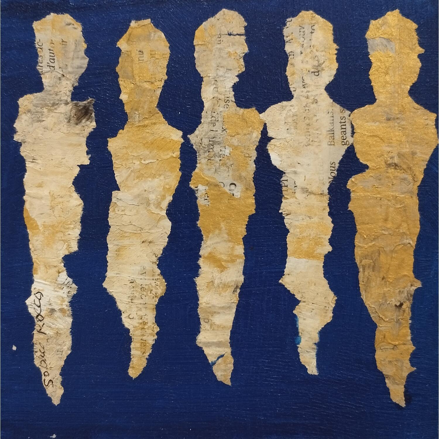 Der Künstler verwendete Acryl, Collage, Sand auf Leinenkarton, um dieses Kleine Gemälde anzufertigen.