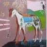 Der Künstler verwendete Acryl, Collage, Pastell auf Leinenkarton, um dieses Kleine Gemälde zum Thema "Tiere" anzufertigen.