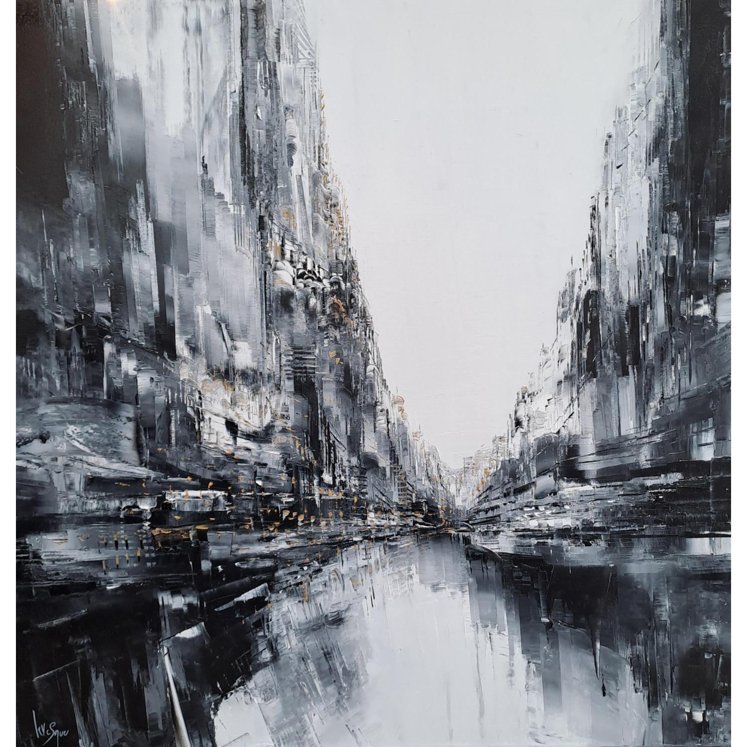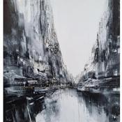 Der Künstler verwendete Öl auf Leinwand, um dieses Große Gemälde zum Thema "Urban" anzufertigen.