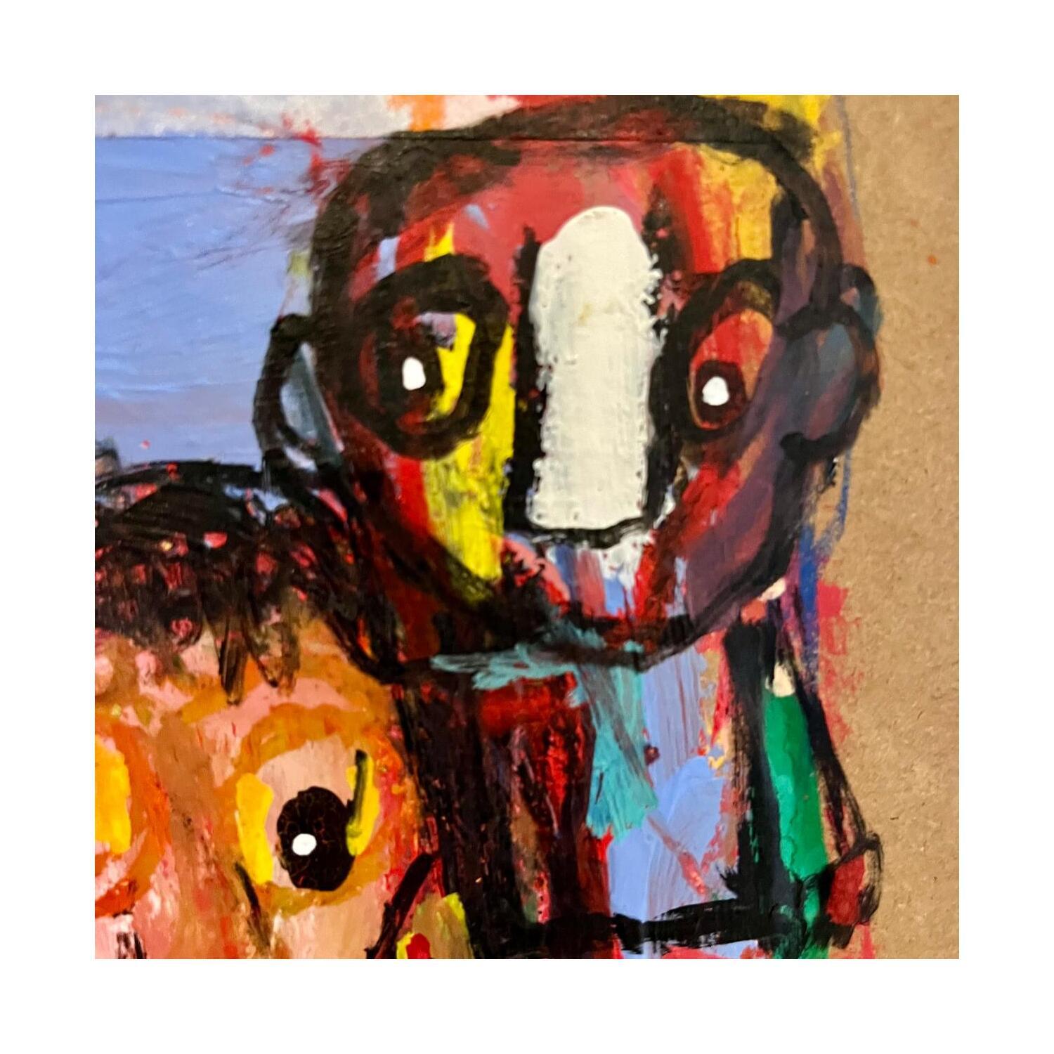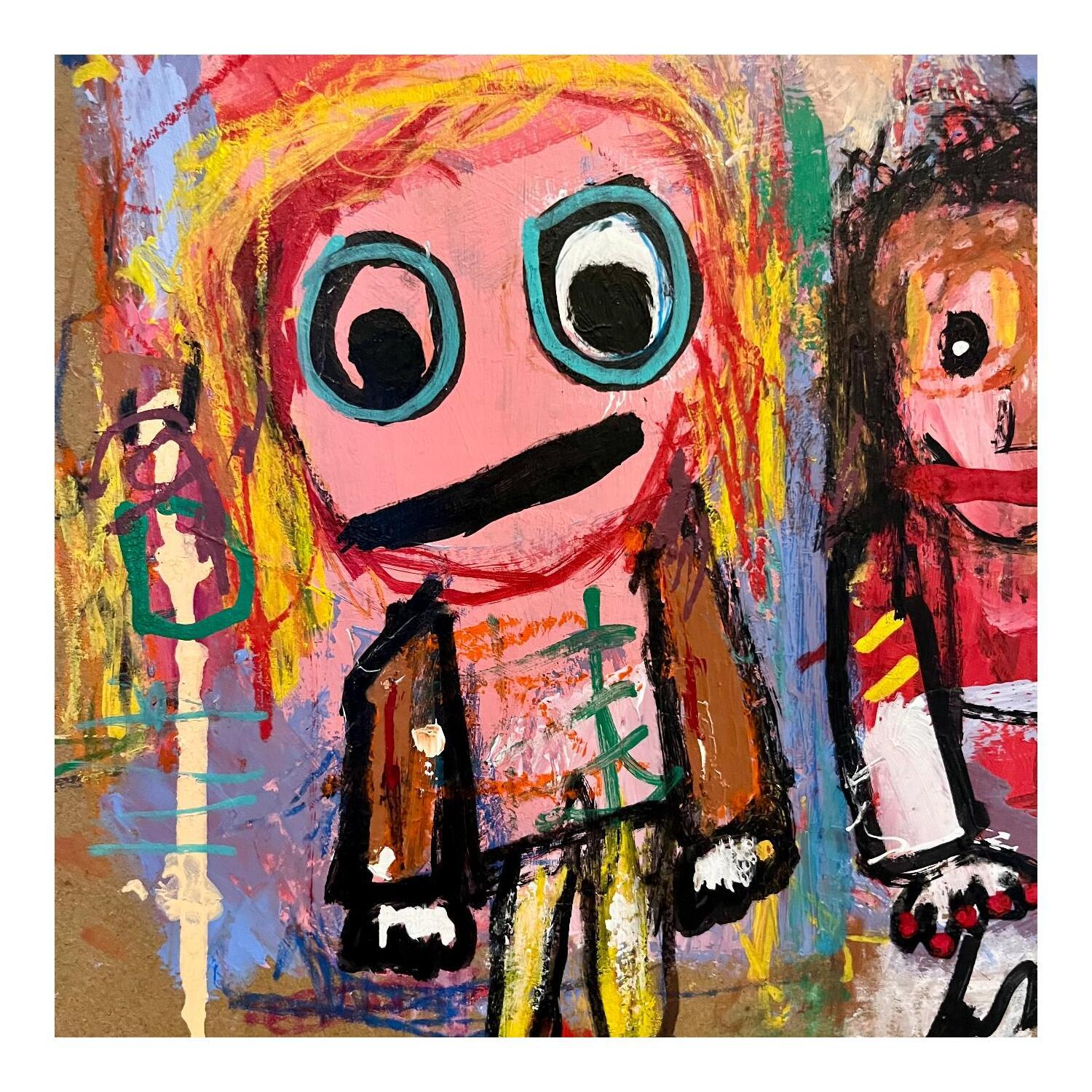 Der Künstler verwendete Pastell, Posca, Acryl auf Pappe, um dieses Kleine Gemälde zum Thema "Alltagsszenen" anzufertigen.