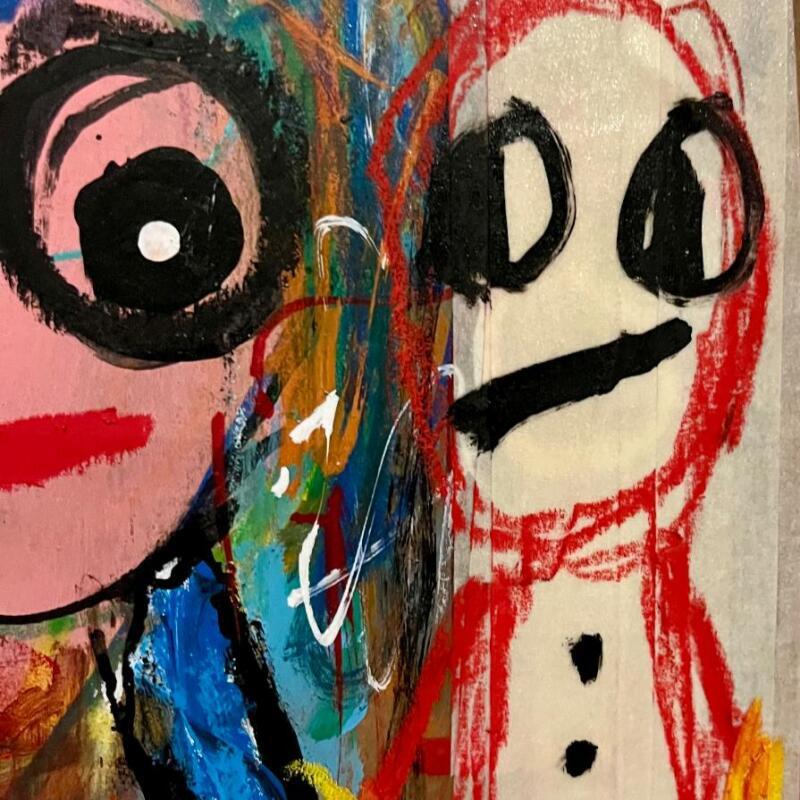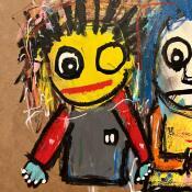 Dieses einzigartige und originale zeitgenössische Kunstwerk "LES AMIS C'EST TOP..." in dem Stil "Art brut" wurde von dem zeitgenössischen Künstler Zaïdi Larbi kreiert.