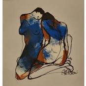 Der Künstler verwendete Acryl auf Papier, um dieses Kleine Gemälde zum Thema "Akt" anzufertigen.