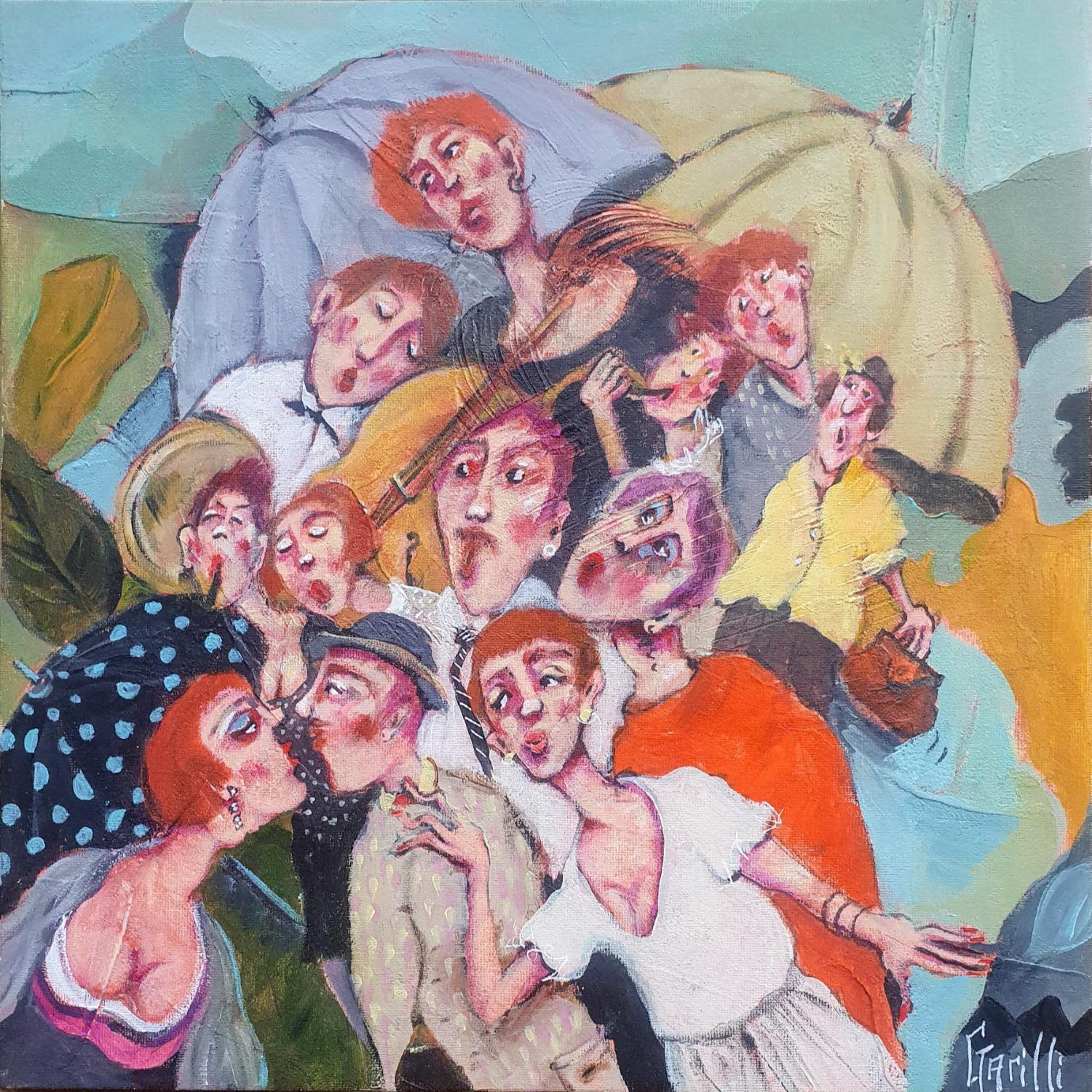 Chantons sous la pluie Gemälde Chantons sous la pluie  von Garilli Nicole | Gemälde Figurativ Alltagsszenen Acryl