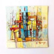 Der Künstler verwendete Acryl auf Papier, um dieses Kleine Gemälde zum Thema "Architektur, Natur, Landschaften" anzufertigen.