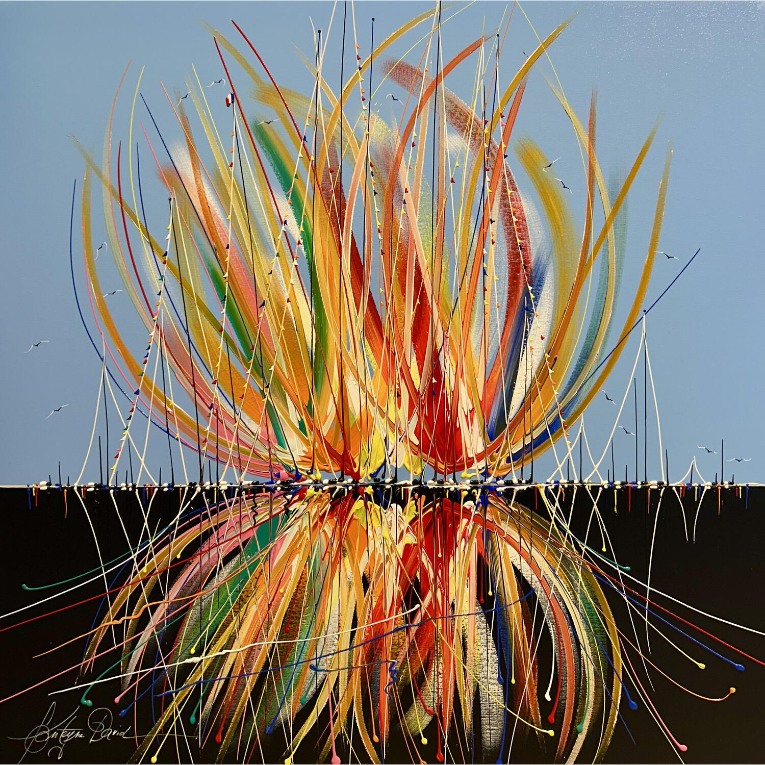 Der Künstler verwendete Acryl auf Leinwand, um dieses Große Gemälde anzufertigen.