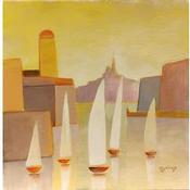 Dieses einzigartige und originale zeitgenössische Kunstwerk "Soleil sur le Port AO85" in dem Stil "Figurativ" wurde von dem zeitgenössischen Künstler Burgi Roger kreiert.