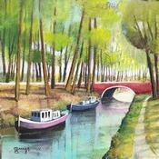 AR18 PONT ROUGE SUR LE CANALGemälde AR18 PONT ROUGE SUR LE CANAL von Burgi Roger | Gemälde Figurativ Landschaften Marine Natur Acryl