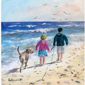 Enfants se promenant sur la plageGemälde Enfants se promenant sur la plage von Lallemand Yves | Gemälde Figurativ Marine Kinder Acryl
