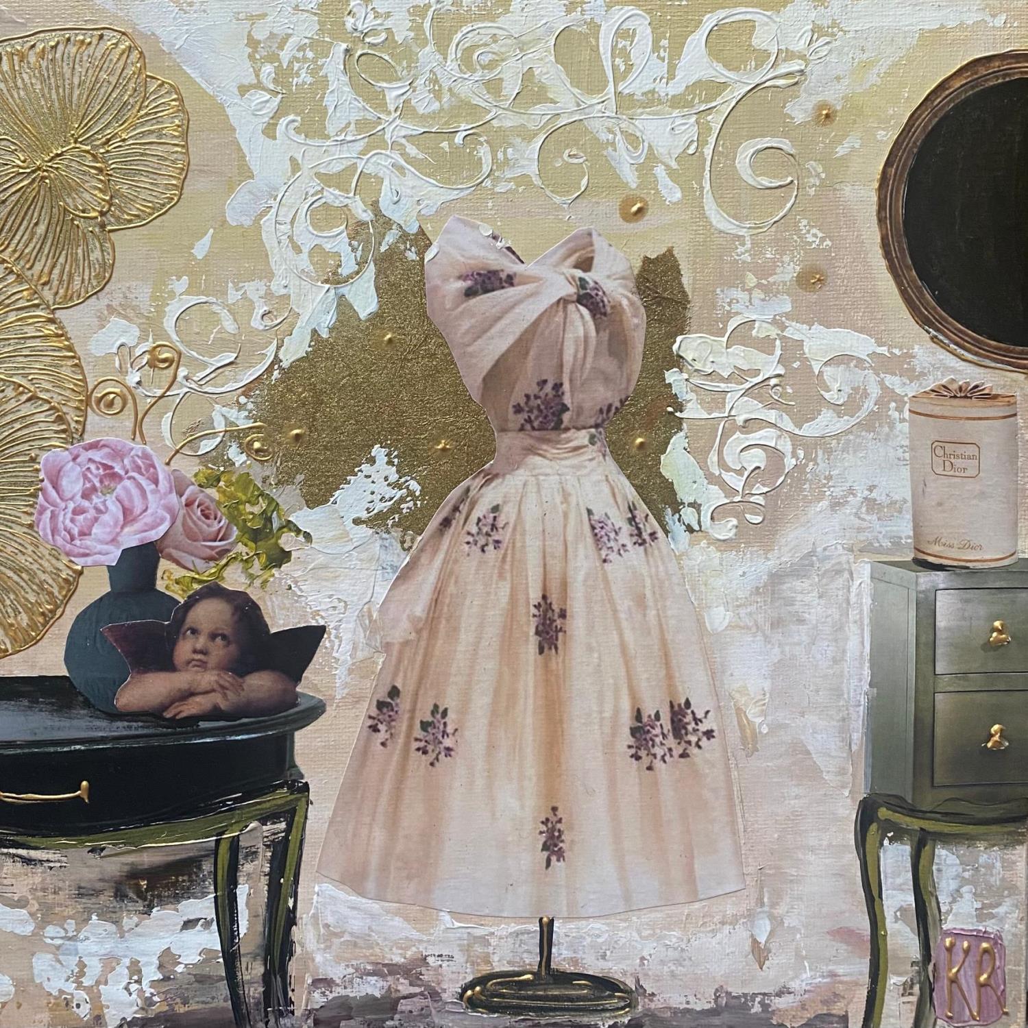 Der Künstler verwendete Acryl, Collage, Pastell, Posca auf Leinenkarton, um dieses Kleine Gemälde zum Thema "Modus, Alltagsszenen" anzufertigen.