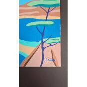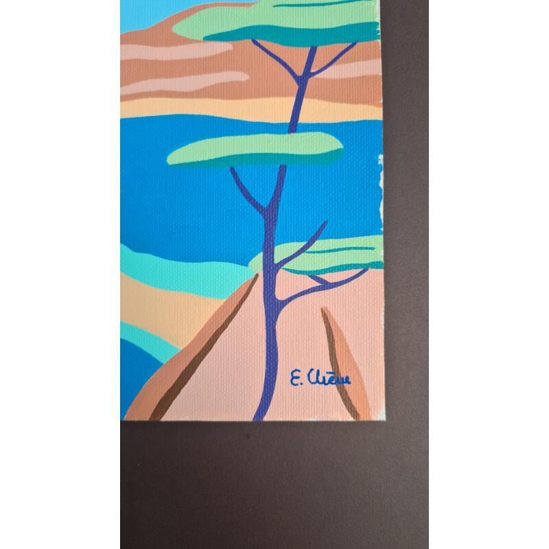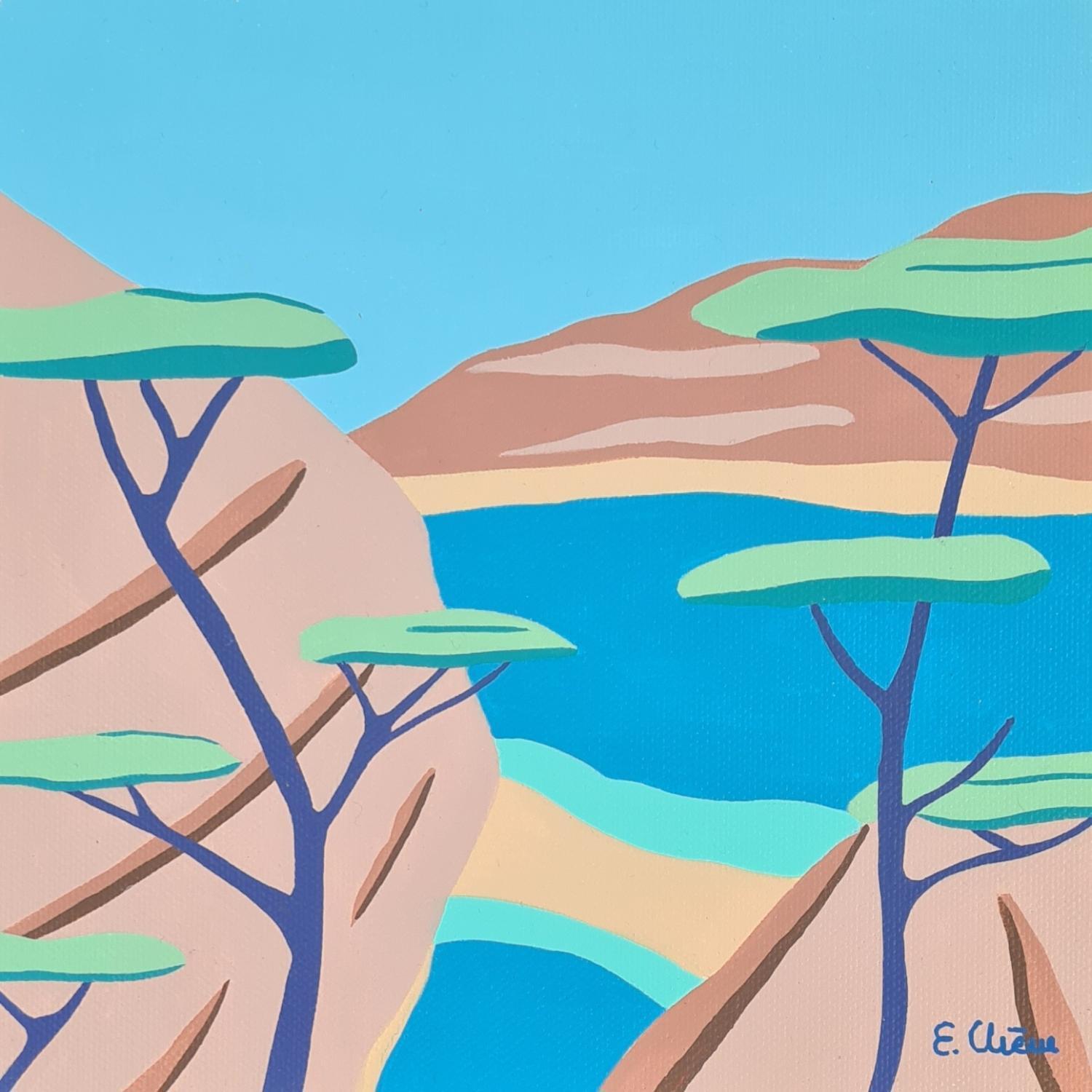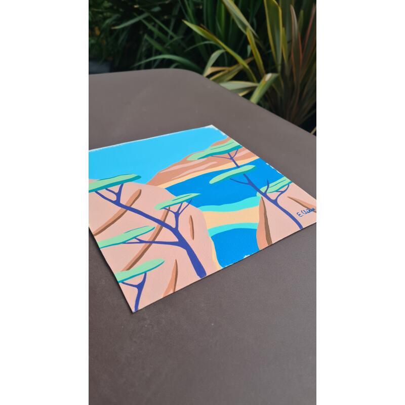 Dieses einzigartige und originelle zeitgenössische Kunstwerk "Crique" wurde von der zeitgenössischen Künstlerin Emilie Chêne geschaffen. Die Künstlerin ließ sich von einer griechischen Landschaft auf der Insel Korfu inspirieren und malte diese Landschaft mit extra feiner Acrylfarbe.