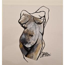 Der Künstler verwendete Acryl auf Papier, um dieses Kleine Gemälde zum Thema "Akt" anzufertigen.