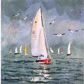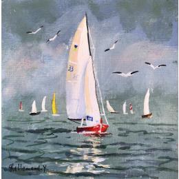 Dieses einzigartige und originale zeitgenössische Kunstwerk "Voiliers et mouettes" in dem Stil "Figurativ" wurde von dem zeitgenössischen Künstler Lallemand Yves kreiert.