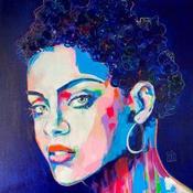 Der Künstler verwendete die Acryltechnik, um dieses großformatige Gemälde auf Leinwand im figurativen Stil mit dem Thema Porträts zu schaffen.