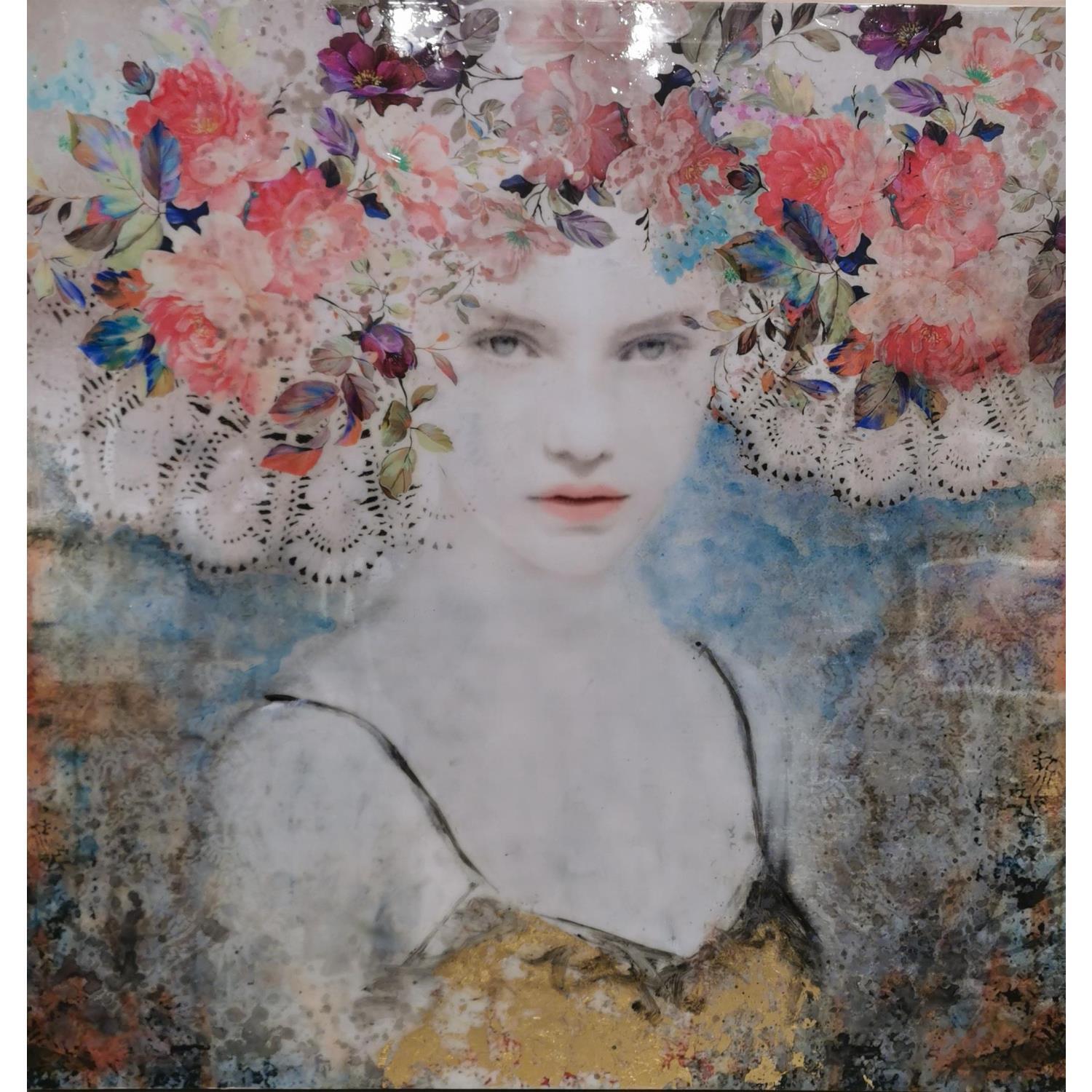 Der Künstler verwendete Acryl, Holz auf Holz, um dieses Große Gemälde zum Thema "Porträt" anzufertigen.