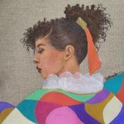 Die Künstlerin verwendete die Acryltechnik, um dieses kleinformatige Gemälde auf Leinwand im figurativen Stil zu schaffen.