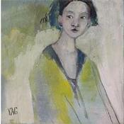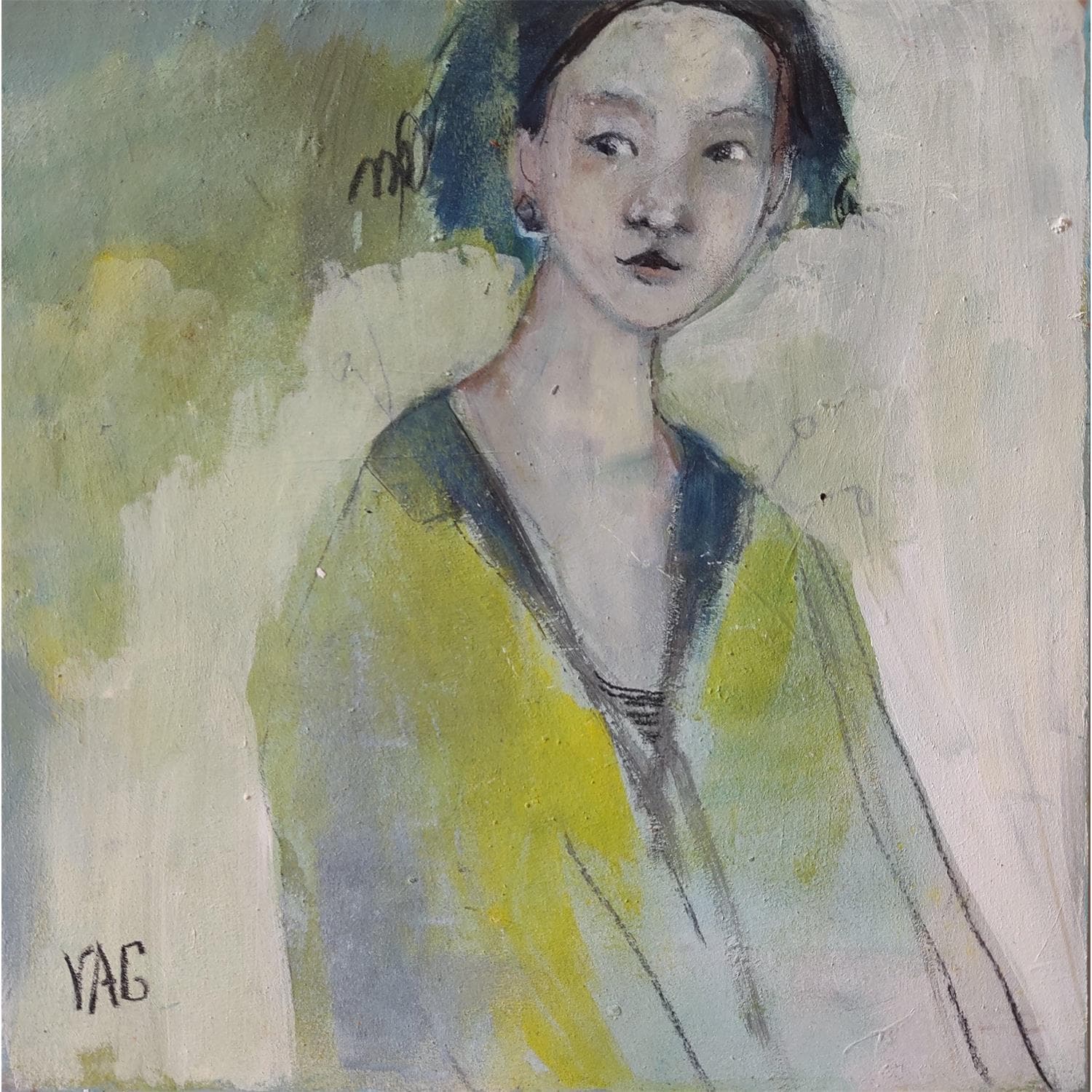 Der Künstler verwendete Acryl auf Holz, um dieses Kleine Gemälde zum Thema "Porträt" anzufertigen.