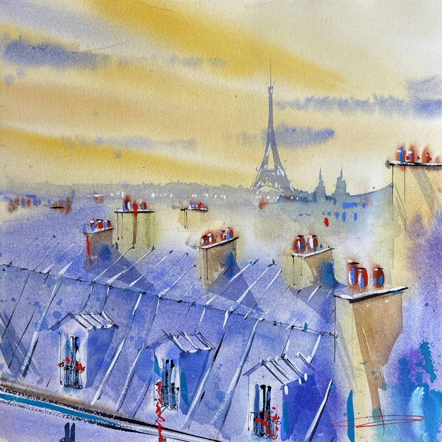 Dieses einzigartige und originale zeitgenössische Kunstwerk "Les cheminées de Paris" in dem Stil "Figurativ" wurde von dem zeitgenössischen Künstler Bailly Kévin kreiert.