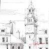 Der Künstler verwendete Aquarell, Tinte auf Papier, um dieses Kleine Gemälde zum Thema "Architektur, Urban" anzufertigen.