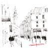 Gemälde Monochrome d'une déambulation lilloise von Bailly Kévin | Gemälde Figurativ Urban Architektur Aquarell Tinte