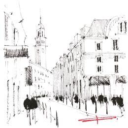 Monochrome d'une déambulation lilloiseGemälde Monochrome d'une déambulation lilloise von Bailly Kévin  | Gemälde Figurativ Urban Architektur Aquarell Tinte